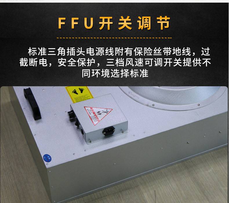 FFU風(fēng)機(jī)過(guò)濾機(jī)組控制采用其公司開(kāi)發(fā)之非接觸感應(yīng)式三檔調(diào)速,電路均采用電器開(kāi)關(guān)控制,控制安全平穩(wěn)。彈性、多元化配置除標(biāo)準(zhǔn)機(jī)型外,可根據(jù)客戶(hù)需求,制作不同規(guī)格的非標(biāo)產(chǎn)品。如:風(fēng)管連接法蘭、濾網(wǎng)、箱體材質(zhì)等變更。人性化設(shè)計(jì)機(jī)組附裝不銹鋼把手,使搬運(yùn)及安裝更為方便快捷。