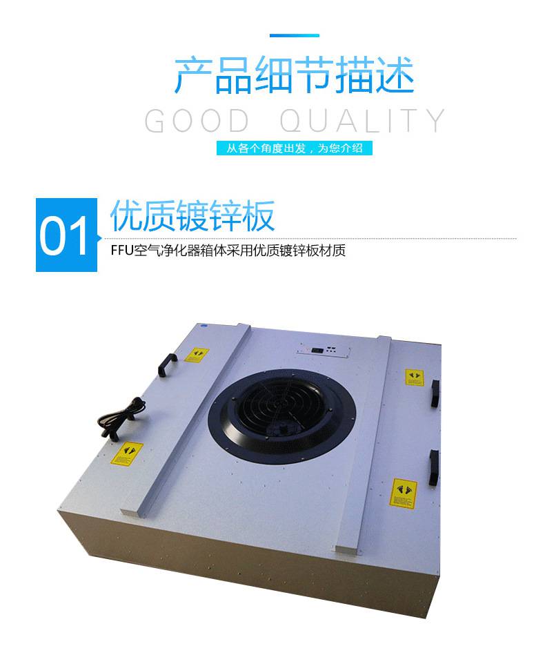 FFU風(fēng)機過濾機組控制采用其公司開發(fā)之非接觸感應(yīng)式三檔調(diào)速,電路均采用電器開關(guān)控制,控制安全平穩(wěn)。彈性、多元化配置除標(biāo)準(zhǔn)機型外,可根據(jù)客戶需求,制作不同規(guī)格的非標(biāo)產(chǎn)品。如:風(fēng)管連接法蘭、濾網(wǎng)、箱體材質(zhì)等變更。人性化設(shè)計機組附裝不銹鋼把手,使搬運及安裝更為方便快捷。
