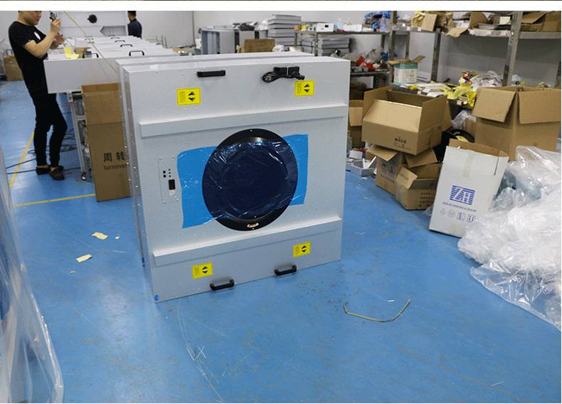 FFU風機過濾機組控制采用其公司開發之非接觸感應式三檔調速,電路均采用電器開關控制,控制安全平穩。彈性、多元化配置除標準機型外,可根據客戶需求,制作不同規格的非標產品。如:風管連接法蘭、濾網、箱體材質等變更。人性化設計機組附裝不銹鋼把手,使搬運及安裝更為方便快捷。