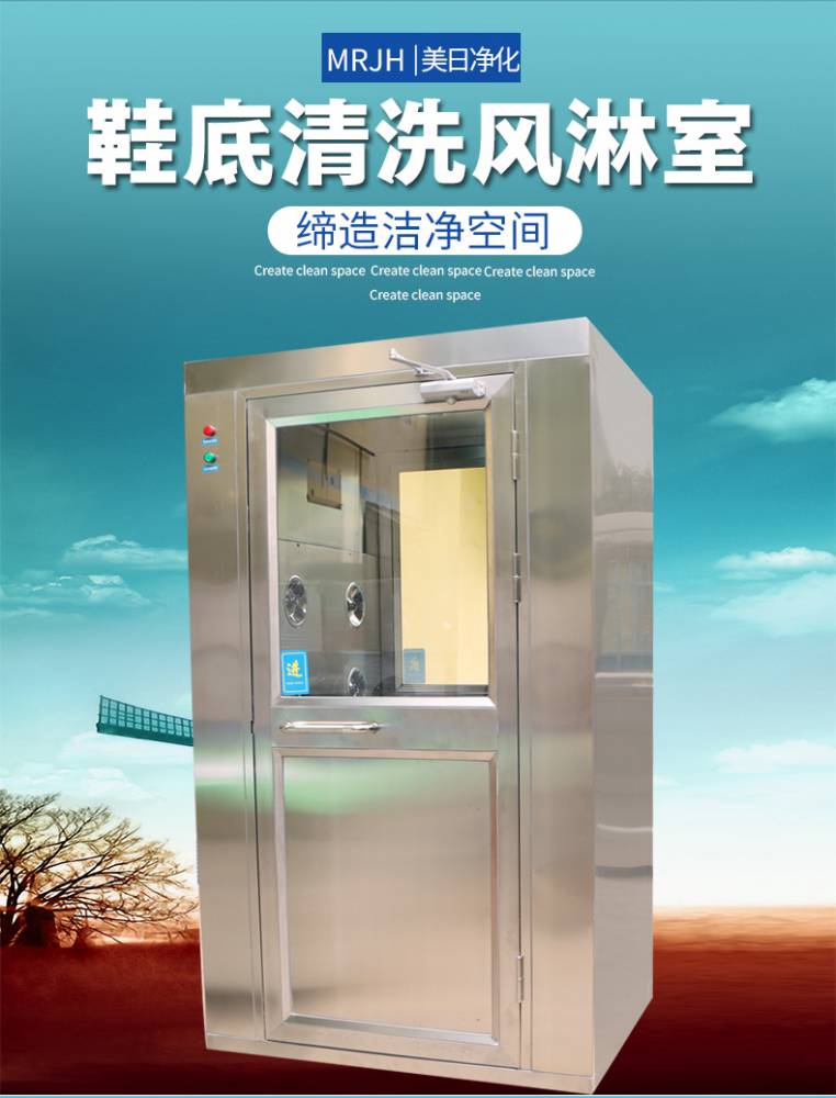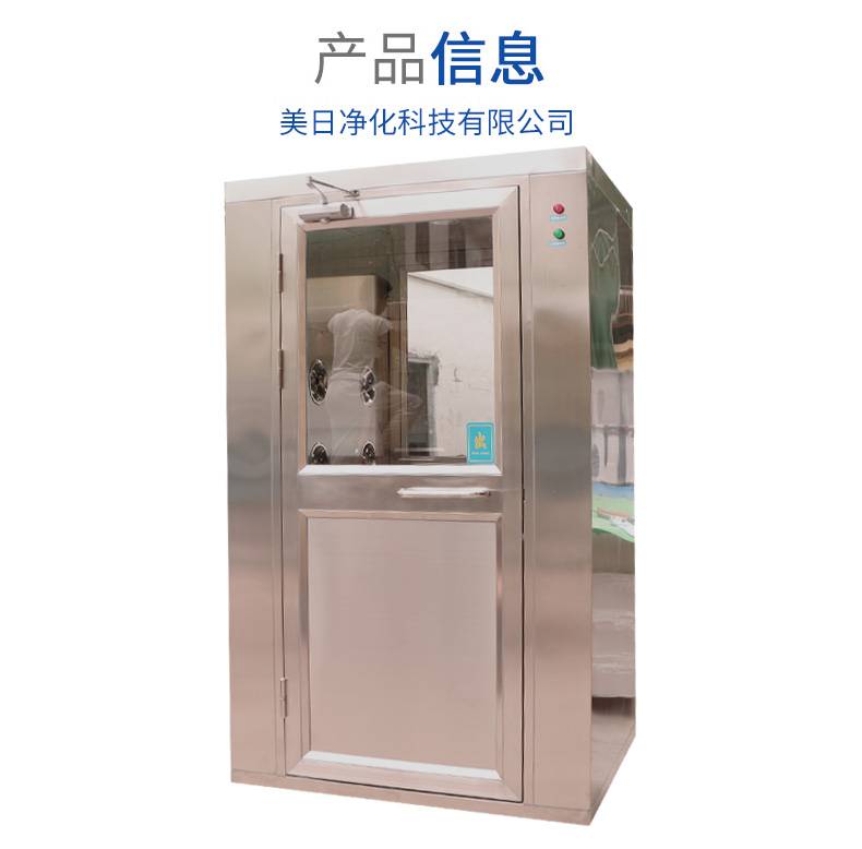 風淋室是一種通用性較強的局部凈化設備,安裝于潔凈室與非潔凈室之間。當人與貨物要進入潔凈區(qū)時需經風淋室吹淋,其吹出的潔凈空氣可去除人與貨物所攜帶的塵埃,能有效的阻斷或減少塵源進入潔凈區(qū)。風淋室/貨淋室的前后兩道門為電子互鎖,又可起到氣閘的作用,阻止未凈化的空氣進入潔凈區(qū)域。