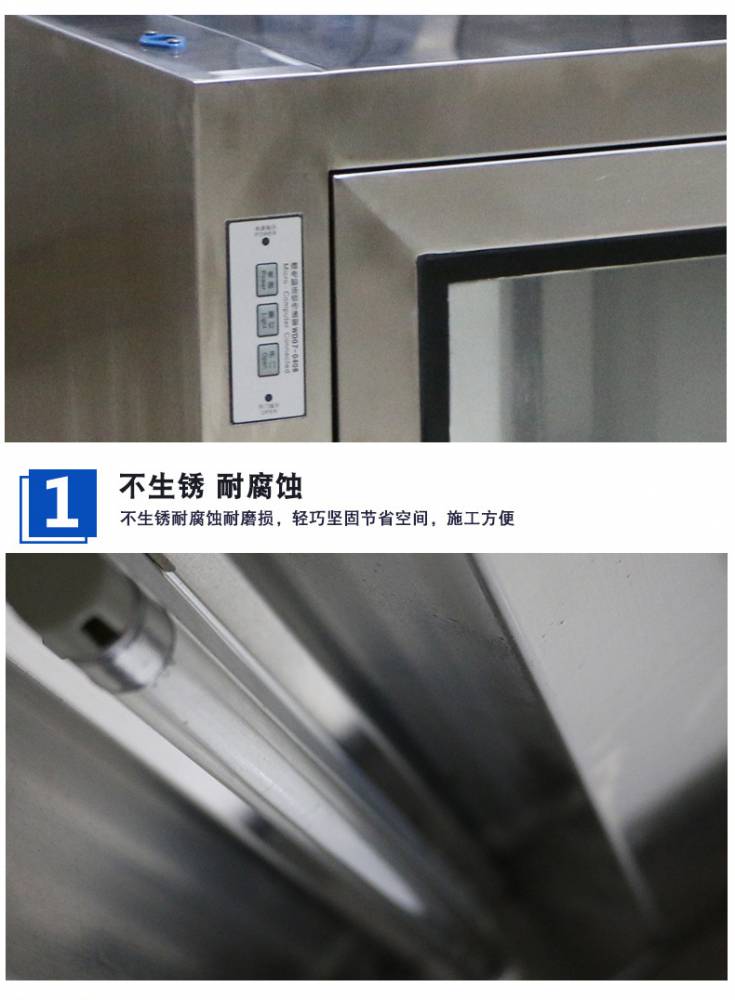 ⒈短距離傳遞窗工作臺面采用不銹鋼板,平整光潔耐磨