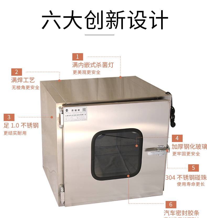⒈短距離傳遞窗工作臺面采用不銹鋼板,平整光潔耐磨