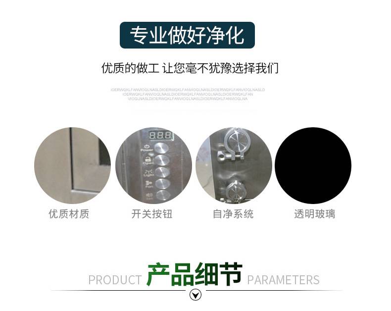⒍采用有隔板高效過濾器過濾效率為:99.99%,確保凈化級別。