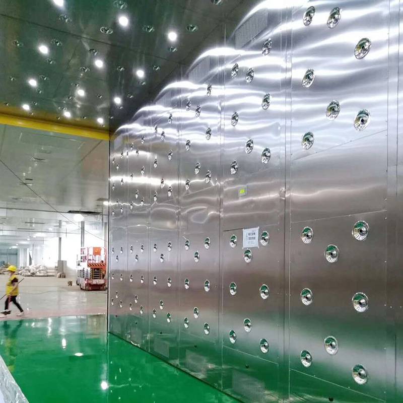 內、外箱體可選用1.0mm冷扎鋼板靜電噴涂或全不銹鋼制造;風淋室內底板配全不銹鋼板。