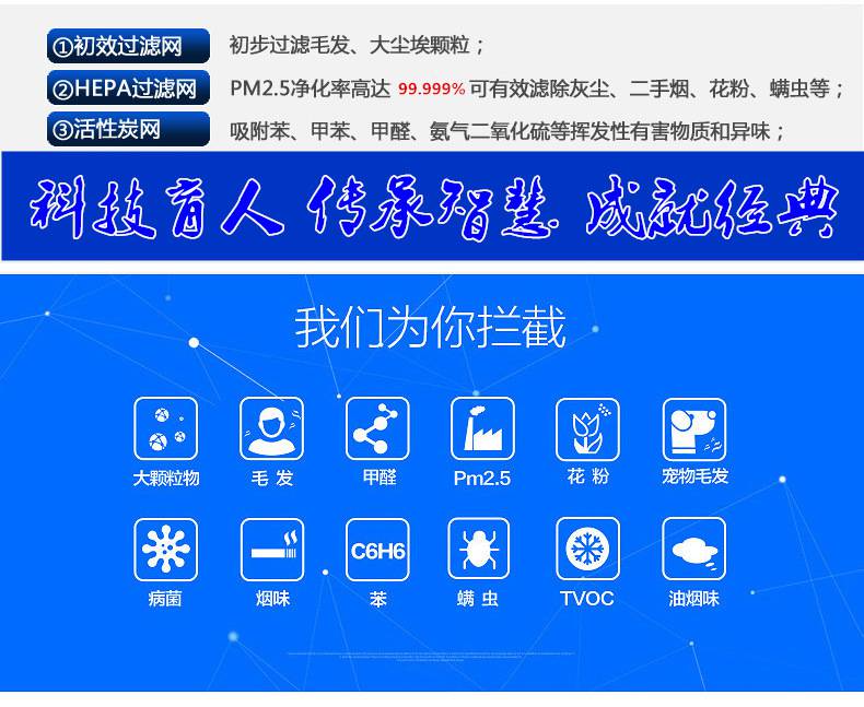 凈化器運行時,機器內的通風機使室內、車內空氣循環流動,污染的空氣通過機內的空氣過濾器過濾后,將各種污染物清除或吸附,然后通過裝在出風口的負離子發生器將空氣不斷電離,產生大量負離子,被微風扇送出,形成負離子流,達到清潔、凈化空氣的目的。
