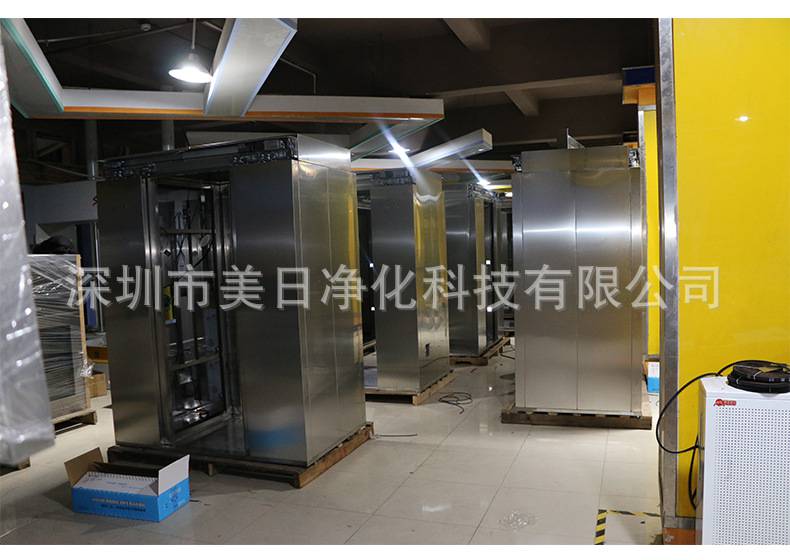 風淋室是一種通用性較強的局部凈化設備,安裝于潔凈室與非潔凈室之間。當人與貨物要進入潔凈區時需經風淋室吹淋,其吹出的潔凈空氣可去除人與貨物所攜帶的塵埃,能有效的阻斷或減少塵源進入潔凈區。風淋室/貨淋室的前后兩道門為電子互鎖,又可起到氣閘的作用,阻止未凈化的空氣進入潔凈區域。