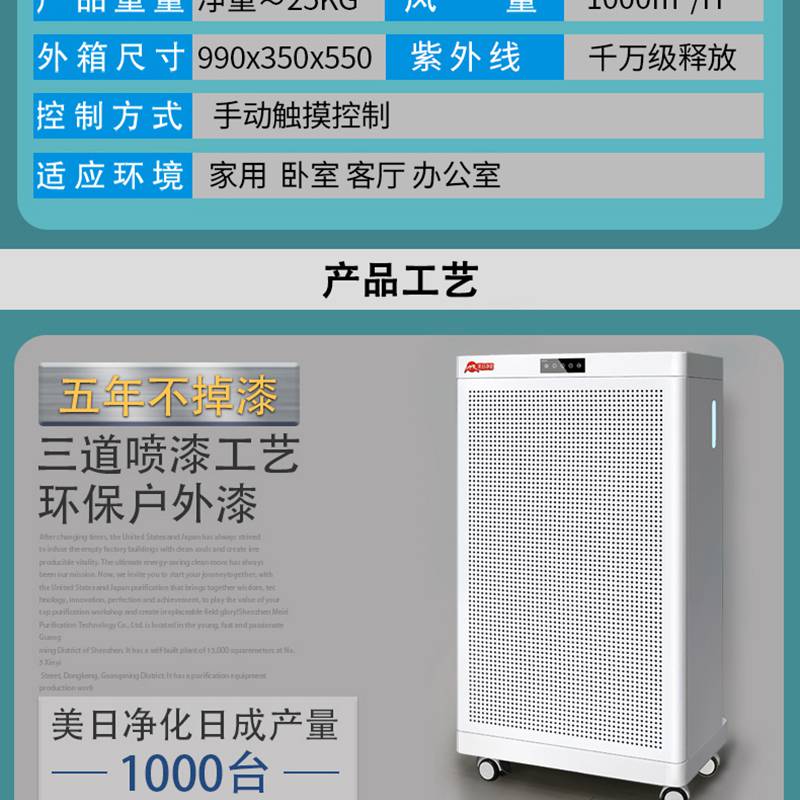 每日凈化空氣凈化器,紫外線快速殺菌、快速除甲醛、PM2.5、過濾煙塵、殺滅細菌和病毒、清除異味、降解有毒化學氣體、凈化清新空氣、呵護人體健康等;多檔風速、多向氣流、及低噪音等。